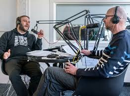 Main image: Lorenzo Zimmer (left) and Jonas Bleeser recording an episode of Schwäbisches Tagblatt’s crime podcast. Image credit: Ulrich Metz.